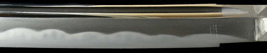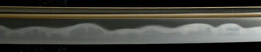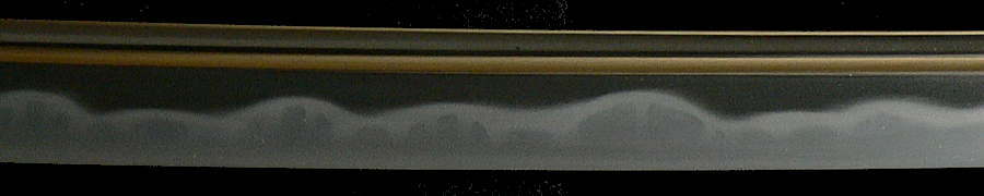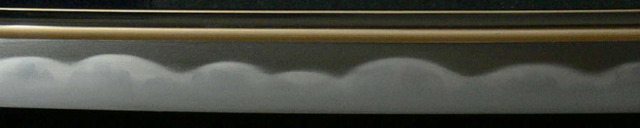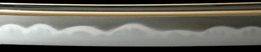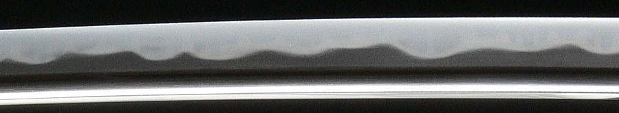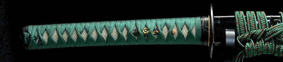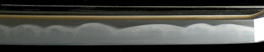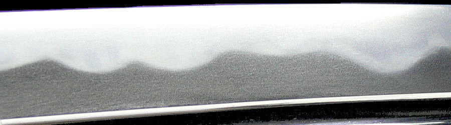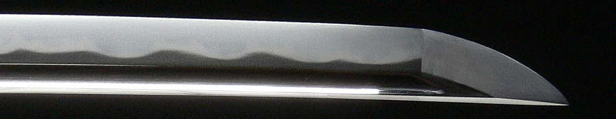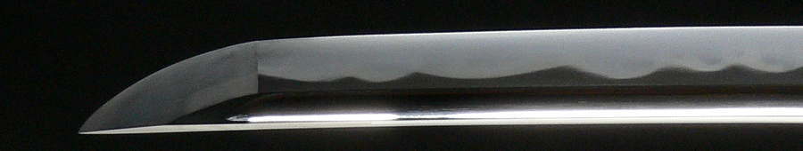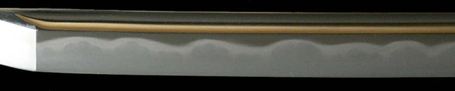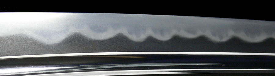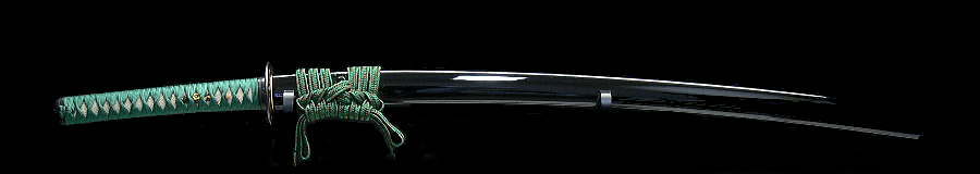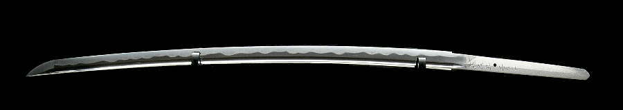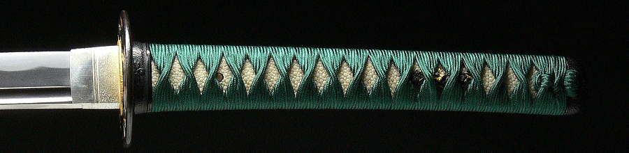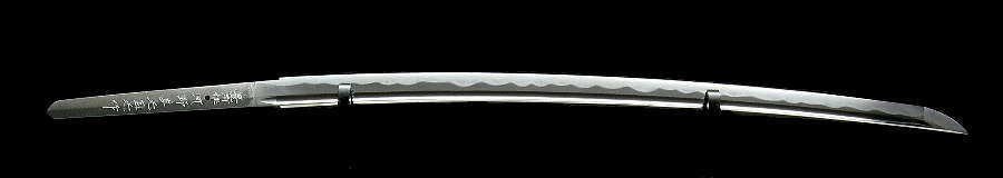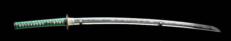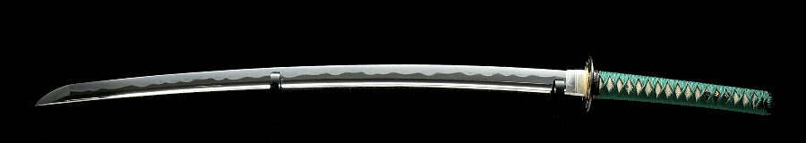| 貞光刀匠は、本名を河野博。故・月山貞一(人間国宝)に師事し積年の修業の後、技量優秀により”貞”の一字を戴き「貞光」を名乗る。国光刀匠は、叔父にあたる。この刀は合作刀で、両刀匠それぞれお得意の技量を発揮している。 鍛えは杢目が均一に鍛えられ精美。元幅・先幅共に広く、重ねは尋常。反りは鳥居反りで優美。刃紋は濤乱刃に小互の目乱れを交える。切っ先伸びる。先の重ねをやや押さえて、素振りにも過負荷感が無い頃合いの仕上げ。茎も充分に長く、居合い・抜刀にも安定した強度が保持出来る。地・刃ともに明るく、鑑賞にも最適。 柄は正絹の青緑色の巻で新巻。鞘は黒呂。ほぼ研ぎ立て。現代の大業物。非常に良く斬れます。鞘払い1,030g。振り易くバランスの良く取れた万人好みの仕上がりとなっています。 |